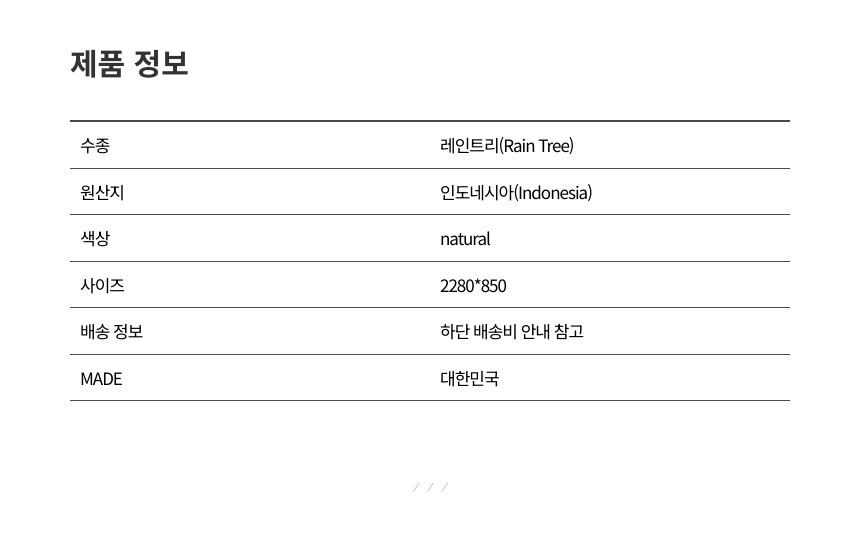 ● 제품별 실측 오차 ±2~3cm, 자연의 크랙/옹이/홈 등은 하자에 해당하지 않습니다.
